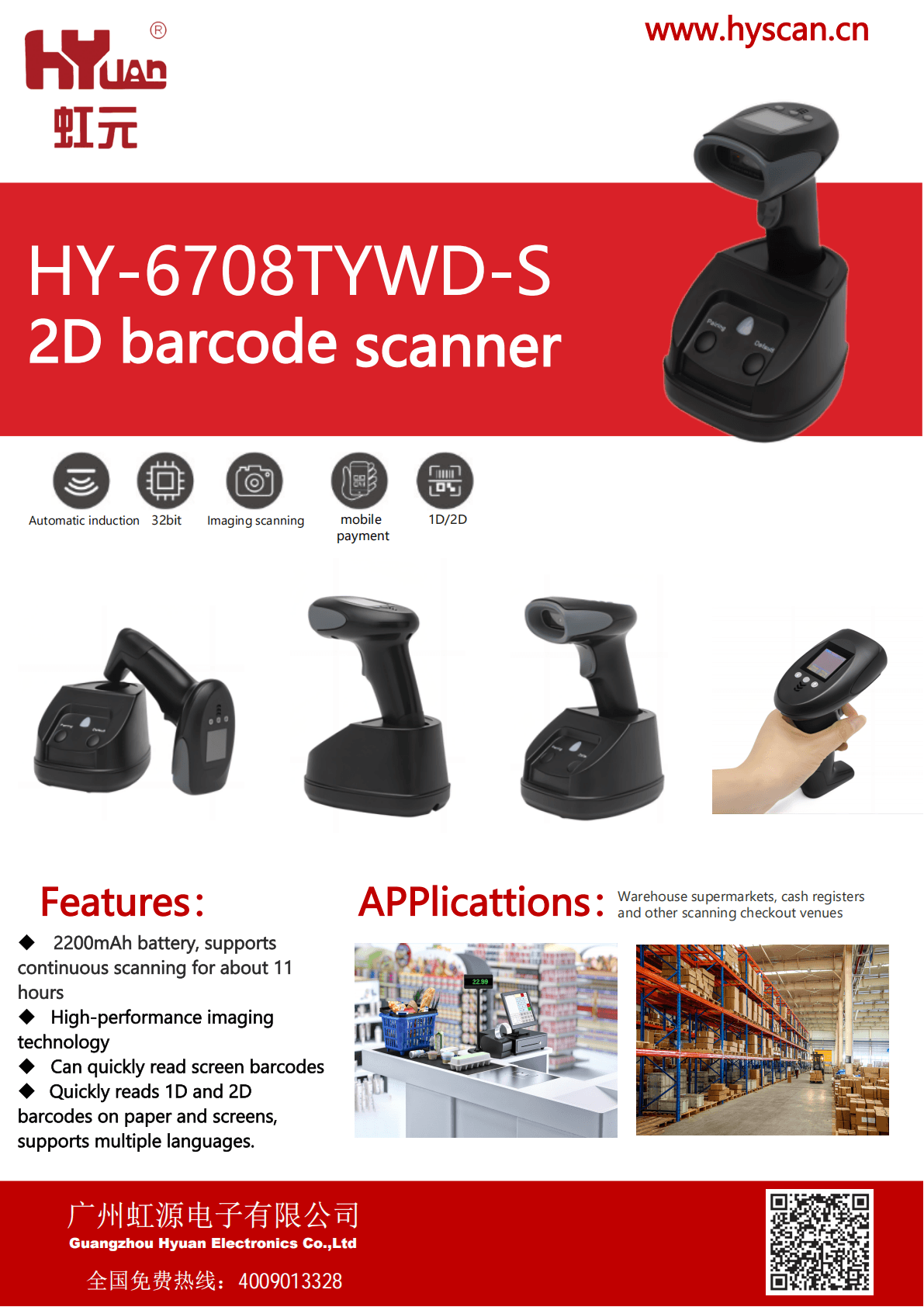 Quickly reads 1D and 2D barcodes on paper and screens supports multiple languages.