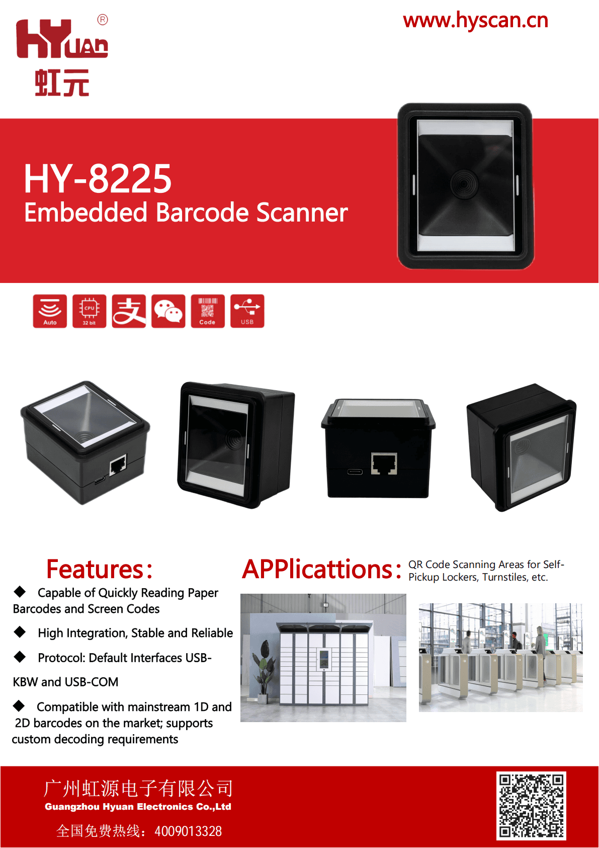 Compatible with mainstream 1D and 2D barcodes on the market; supports custom decoding requirements