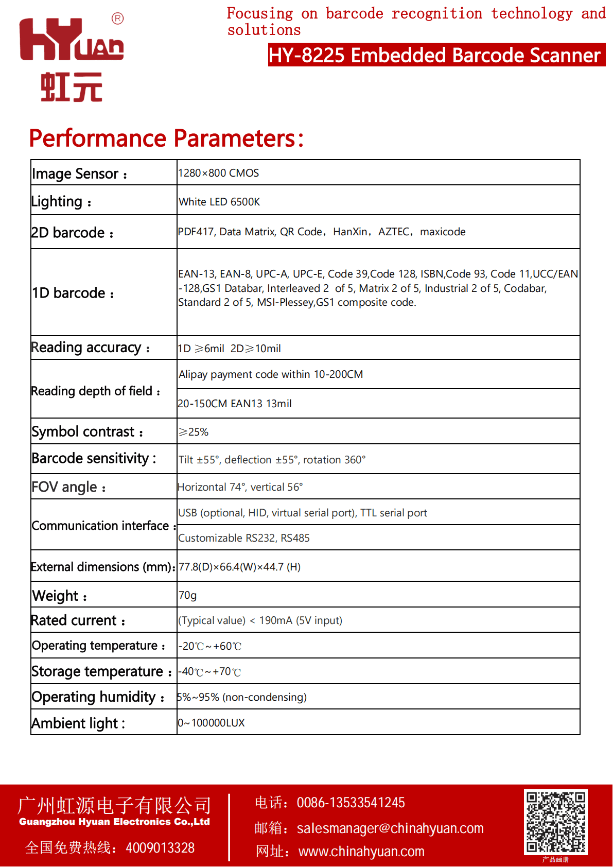 Compatible with mainstream 1D and 2D barcodes on the market; supports custom decoding requirements