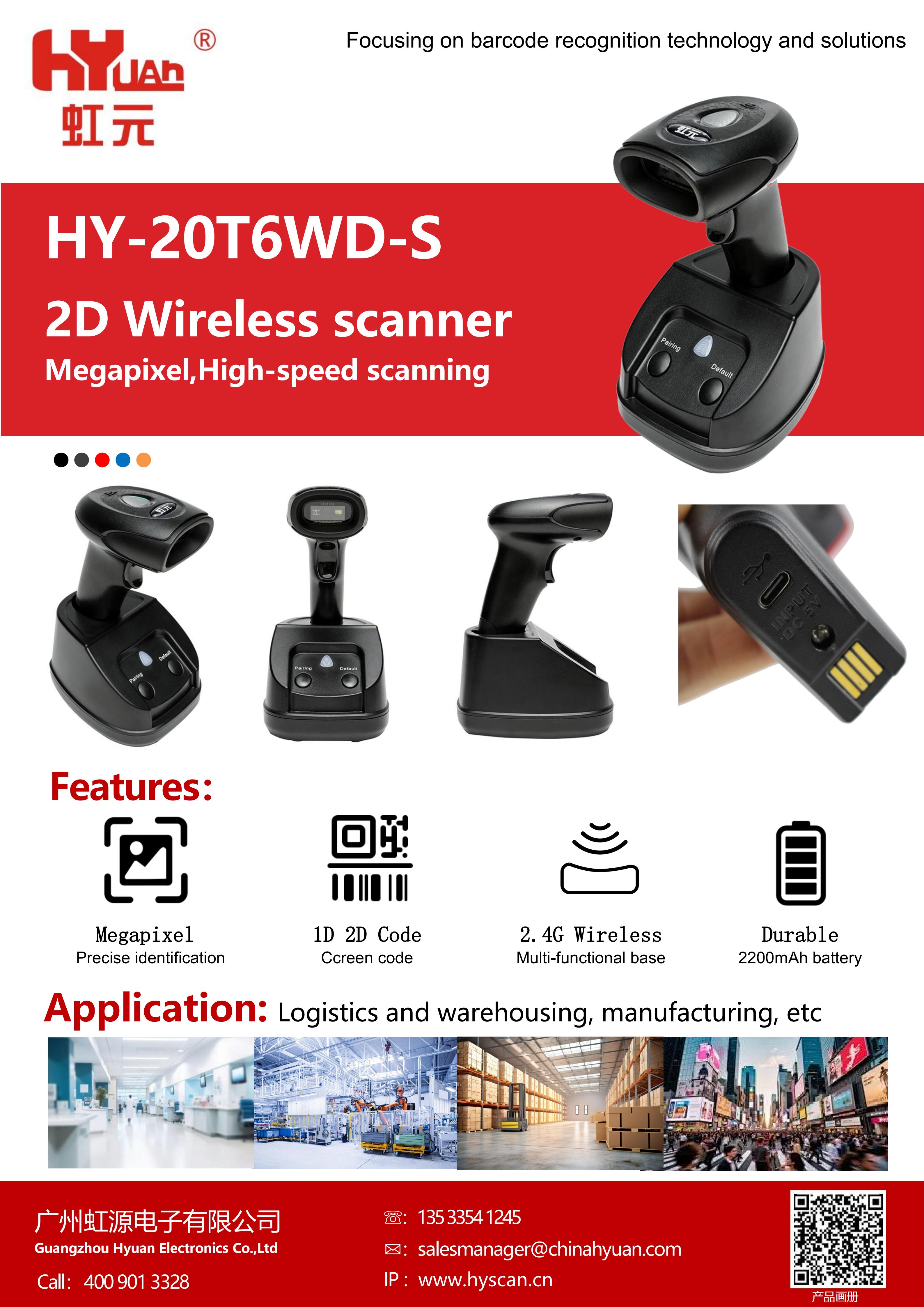Quickly reads 1D and 2D barcodeson paper and screens, supportsmultiple languages